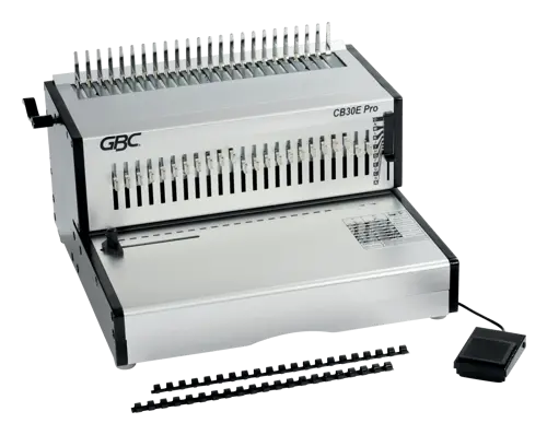 Der CombBind® CB30E Pro ist ein robustes und langlebiges CombBind Bindegerät, welches für Aufgaben in Büro-, Heim- und Schulumgebungen mit mittlerem bis hohem Nutzungsvolumen entwickelt wurde. Die versenkbaren Stanzstifte passen sich mühelos an Papierformate bis A4 an und bieten eine anpassbare Randtiefen für Ihre Bedürfnisse. Das Gerät ist einfach zu bedienen und verfügt über einen praktischen Behälter für Stanzabfall zur einfachen Entsorgung. Kann bis zu 30 Blätter (70 g/m²) stanzen und bis zu 500 Blätter auf einmal mit 51mm Binderücken effizient binden. Farbe Silber.