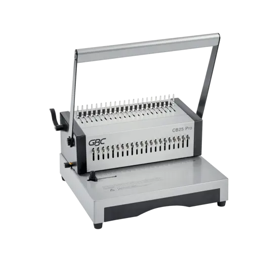 Das Hochleistungs-Plastikbindegerät CombBind® CB25 Pro ist ein zuverlässiges Gerät, welches ihre täglichen Aufgaben im Büro, zu Hause und in der Schule erleichtert. Die versenkbaren Stanzstifte ermöglichen eine mühelose Anpassung an Papierformate bis zu A4 und bieten die Möglichkeit, die Ränder individuell anzupassen. Das Gerät ist einfach zu bedienen und verfügt über eine praktische Schnittgutablage für schnellen Zugriff. Dieser robuste A4 Bindegerät stanzt bis zu 25 Blätter (70 g/m²) und kann bis zu 500 Blätter auf einmal mit 51 mm Kunststoffbinderücken binden, was es zur idealen Wahl für eine effiziente Dokumentenorganisation macht. Farbe Silber.
