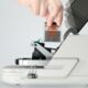 Das Flachklammernmagazin, mit einem Füllvolumen von 5.000 Klammern, lässt sich einfach über das Öffnen des Gerätedeckels austauschen.