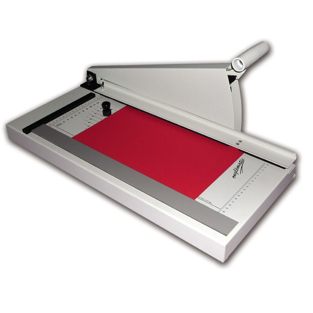 Die Onglematic O3 ist ein einfacher und sehr preisgünstiger manueller Register- und Zwischenblattschneider für lose Blätter. Das Gerät hat eine manuelle Positionierung zum Schneiden von 2-12-teiligen Registern. Die gewünschte Anzahl der Tabs wird auf der Länge des Dokuments gleichmäßig verteilt. Das Gerät kann auch als Hebelschneider verwendet werden. Sie haben die Möglichkeit zwischen 4 verschiedenen Messern zu wählen. Der Schnitt und die Positionierung der Tabs erfolgt bei diesem Modell manuell. Die automatische Papierpressung beim Schneiden verhindert ein verrutschen des Papiers. Die max. Registertiefe beträgt 18 mm und lässt sich mit dem magnetischen Papieranschlag einstellen. Der Arbeitstisch ist mit einer Maß Skala für präzises Arbeit bedruckt.