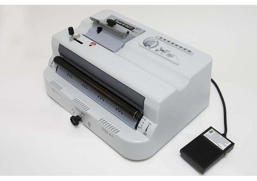 Dieses Coil-Bindegerät ist ein Coil-Finisher in sehr robuster Bauweise und kann die Papierformate DIN A4, DIN A5, 8 1/2", 11" (Lettersize), 12", 14" verarbeiten.